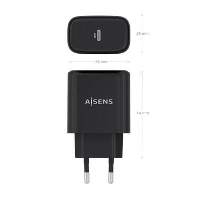 AISENS Cargador GaN 45W, 1xUSB-C PD3.0, Negro